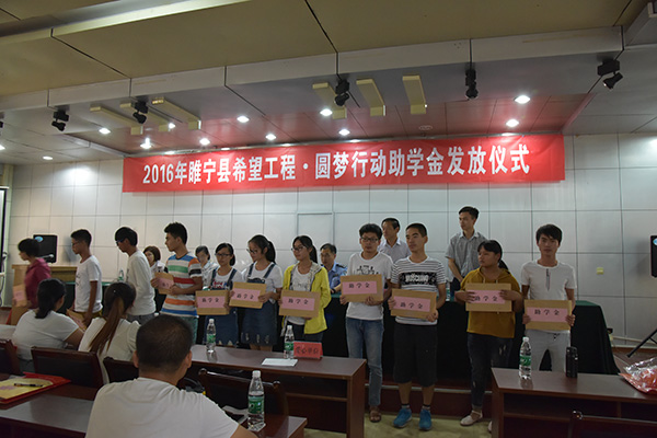 8月26日,睢宁县2016年希望工程·圆梦行动助学金发放仪式在睢宁县卫计委会议室举行。华体会体育团委为10位困难家庭的高考子女送去了助学金。
